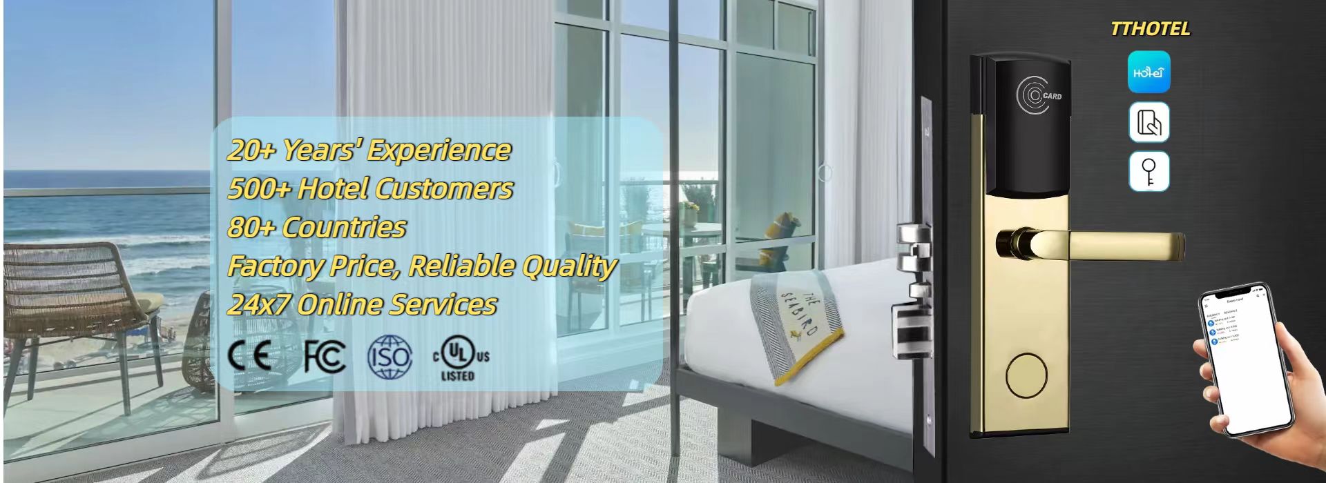 Our main products are Hotel Door Locks & System, Electronic Residential Door Locks, Electronic Cabinet Locks, Hotel Guest Room Products, like safe, minibar, room number signage system … etc. they are widely used for more than 500 customers worldwide, like hotels, offices, apartme...